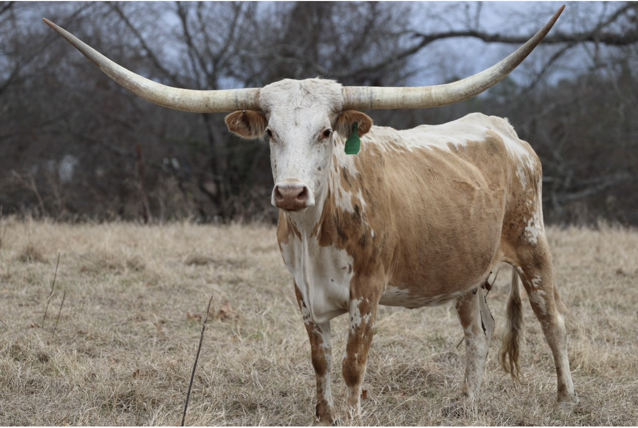 Pearldini is a unique color that is a medium frame cow with a good set of lateral horns. She is out of the 96" ttt iconic deceased TCC Houdini.